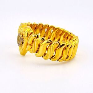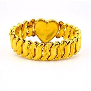 This bracelet is not marked as gold filled, although most stretch sweetheart bracelets we have seen are gold filled. It could be gold plated. We will not acid test as it would damage the plating if it is gold plated, and the plating is intact and rich.