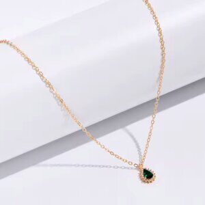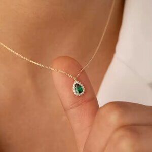 Gold Teardrop Emerald Pendent Necklace