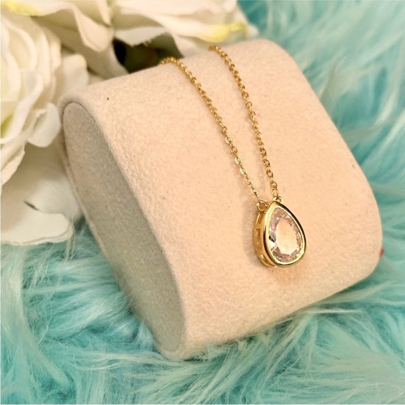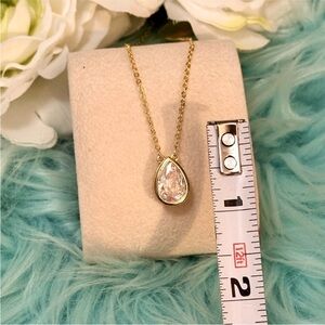 Gold Teardrop Gemstone Pendant Necklace NEW!