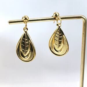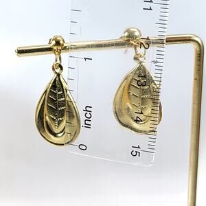 Bring a touch of nature-inspired elegance to your style with these gold-tone teardrop leaf dangle earrings, a perfect balance of timeless charm and modern design. Each earring features a delicate leaf engraving framed within a graceful teardrop shape, creating a sophisticated accessory that adds subtle detail to any outfit. Measuring about 3.5 cm (1.37 inches) in length, they are lightweight and comfortable, making them easy to wear throughout the day while still offering a statement-worthy look. The polished gold finish gives them a radiant shine, ensuring versatility for both casual ensembles and formal occasions. Whether paired with jeans and a blouse for an everyday touch of sparkle or styled with an evening dress for a refined finish, these earrings adapt beautifully to your wardrobe. Ideal for nature lovers and those who appreciate jewelry with meaning, they also make a thoughtful gift for birthdays, anniversaries, holidays, or simply treating yourself to something special.