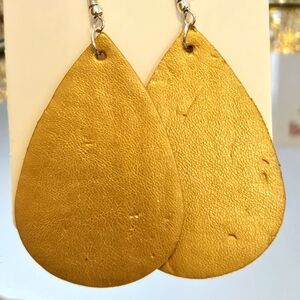 Elegant gold teardrop faux leather earrings are perfect for any occasion. Add a touch of sophistication to your outfit. These earrings have been pre- loved, so please look at the pictures.