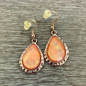 Gold Teardrop Pearlescent Jewel Peach Orange Earrings