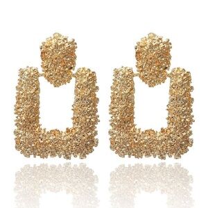 Gold Textured Door Knocker Earrings Statement Square Drops