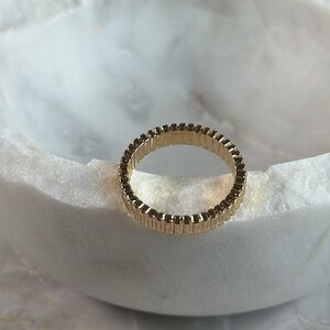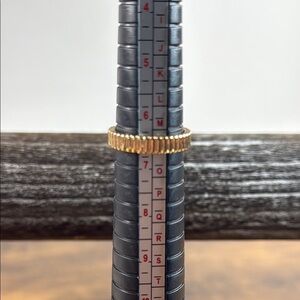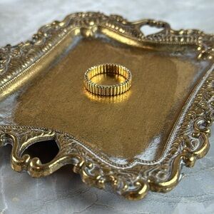 Elegant gold ring with a textured design. Perfect for adding a touch of sophistication.