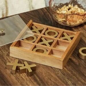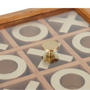 Enjoy classic fun with this elegant gold Tic-Tac-Toe game set. Perfect for home entertainment.