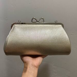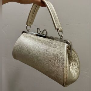 Gold Togo Cowhide Calfskin Handmade “Bow” Shaped Kisslock Baguette Bag/Crossbody
