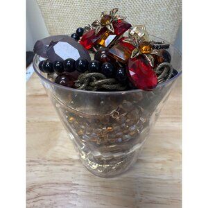 Gold Tone 1 Lb Jewelry Assortment With Red & Amber Accents Boho Style Fall Earth