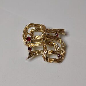 Gold Tone And Red Asymmetrical Brooch. Check Out My Closet For Other Great Items!!! Thank You For Considering Making A Purchase.