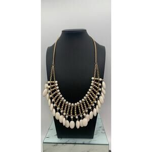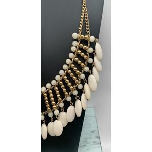 Gold Tone And White Dangly Beaded Statement Collar Bib Necklace
