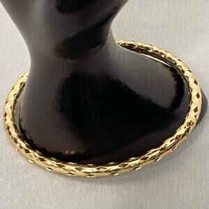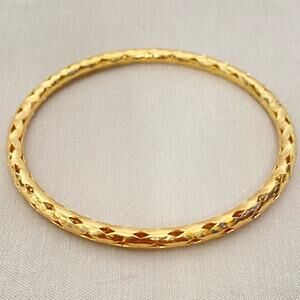 Gold Tone Bangle Bracelet Diamond Pattern Cutout