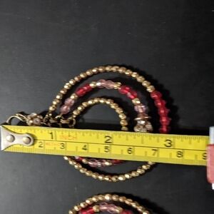 Gold Tone Beaded Pink Crystal Rhinestone Dangle Hoop Statement Earrings