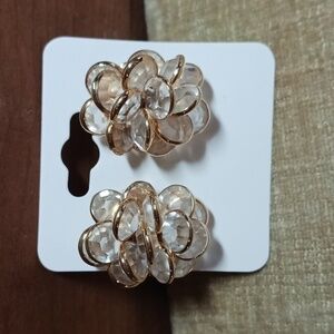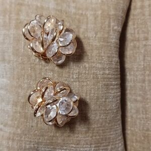 Gold Tone Bezel Set Clear Rhinestone Cluster Post Earrings