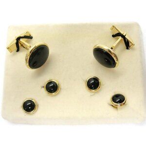 Gold Tone Black Cufflinks Shirt Buttons Set Formal Wedding Tux Vintage