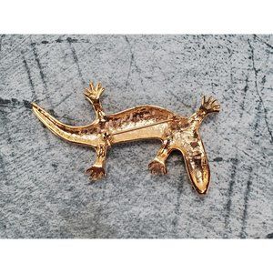 Gold Tone Black Stripe Geeko Brooch Pin Product comes in used, but cleaned condition