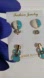 Gold Tone Blue & White Enamel Ball, Guitar, Crystal Stud Earrings Set - Women's