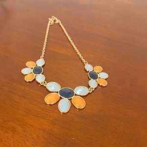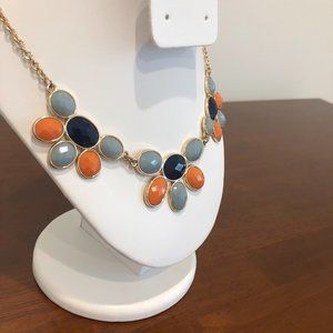 -Beautiful Gold Tone Blue and Orange Statement Necklace.