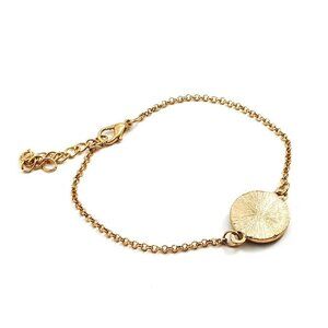 Sparkly gold tone chain bracelet accented with a round gray/silver tone faux druzy stone/charm at the center.