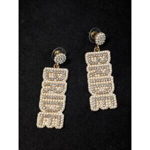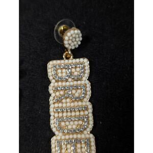 These white and gold tone beaded earrings for the bride are in good condition! Please see photos for size.