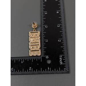 Gold Tone Bride White Bead Rhinestone Dangle Pierced Earrings Wedding
