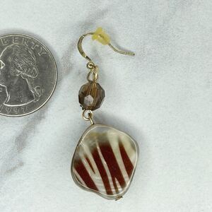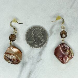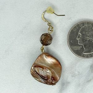 Gold Tone Brown Beaded Shell Dangle Earrings Pierced Pair