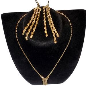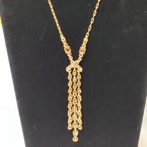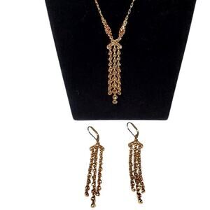 Gold Tone Brown Rhinestone Necklace Earring Set Unsigned 16 inches Elegant Vintage.