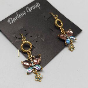 Gold Tone Butterfly Earrings With Resin Crystal Accents By Darlene Group