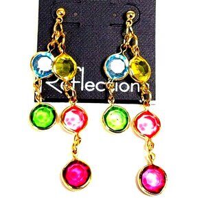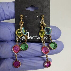 Gold Tone Chain Drop Earrings with Multicolor Crystal Dangles – Women's Jewelry
