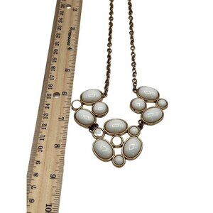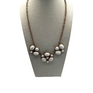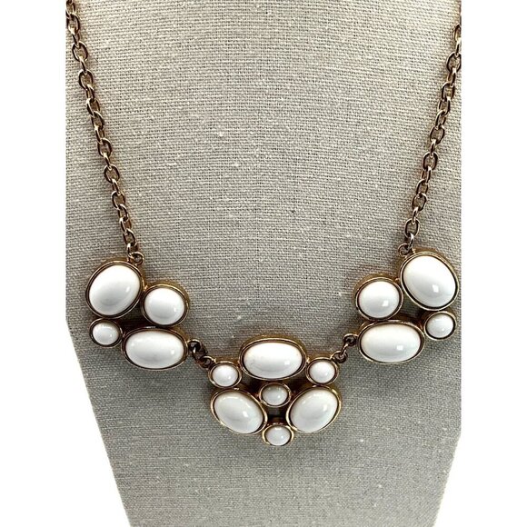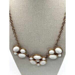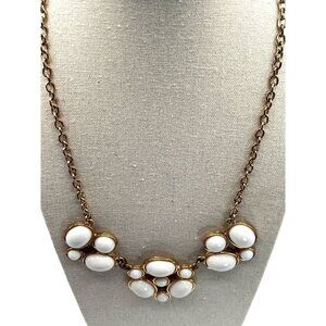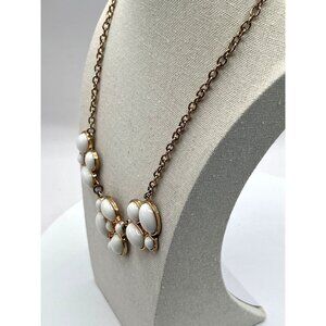 Gold Tone Chain Necklace With White Oval Beads & Lobster Claw Clasp