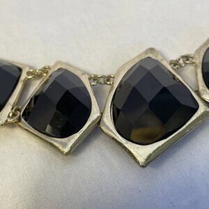 Gold Tone Chain With 7 Large Geometric Black Faceted Synthetic Stones in Bezels.