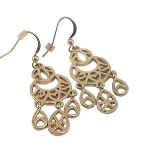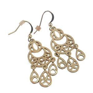 Gold Tone Chandilier Earrings Drop Pierced Fish Hook Back