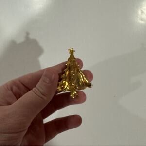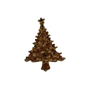 Gold Tone Christmas Tree Brooch Pin Holiday Accessory Vintage Style Jewelry
