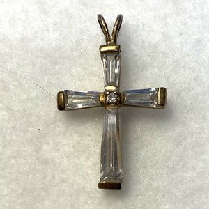 Gold Tone Clear Beveled Crystal Cross Pendant Necklace 925 Done