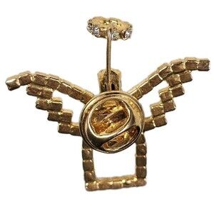 Gold Tone Clear Prong Set Sparkly Rhinestone With Halo Angel Pin Brooch