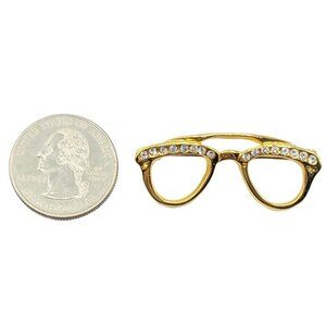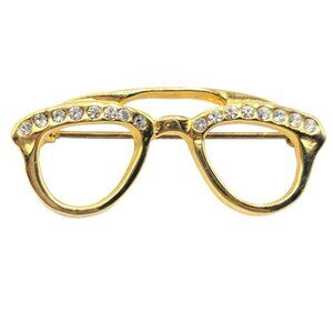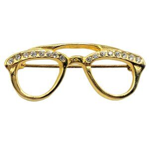 Gold Tone Clear Rhinestone Eye Glasses Brooch Pin
