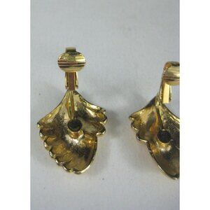 Gold Tone Clip On Earrings Leaf Design Scalloped Edges Vintage 1980