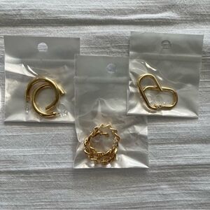 Clip-On Gold tone hoop earrings. Bundle of 3 pairs. All new in packages.