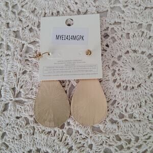 Grab this pair of gold tone cork pink floral teardrop dangle earrings now.