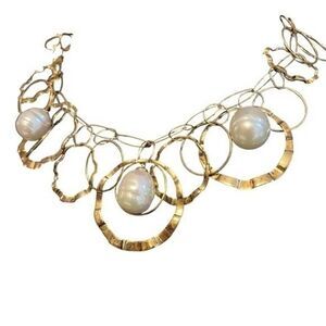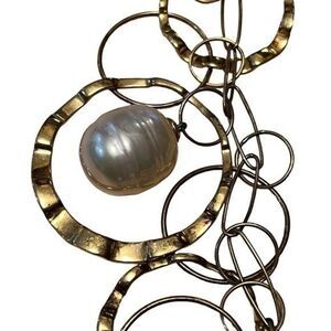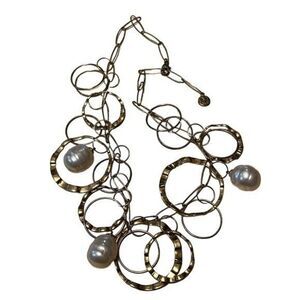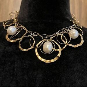 Like new Gold Tone Costume Necklace Pearl Like Circle Links Layers of Circles
