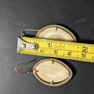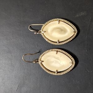 Gold Tone Cream and Rhinestone Oval Statement Earrings.