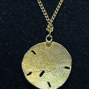 Gold Tone Curb Chain Necklace With Sand Dollar Pendant. There are no hallmarks on it.