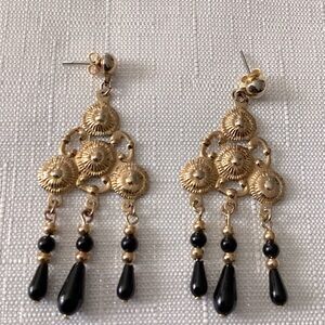 Very pretty earrings with black beads and gold tone in between.