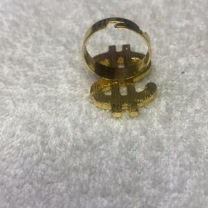 Shimmering gold dollar sign ring adorned with sparkling stones. Perfect for adding a bold statement to any outfit. Size 8
