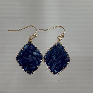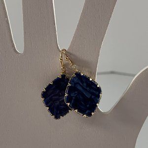 Gold Tone Earrings Dangle Triangle Shaped Blue Acrylic 1.5" Long