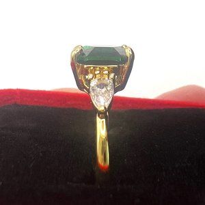 Gold Tone Emerald & Diamond Simulant Ring, Size 7.25
