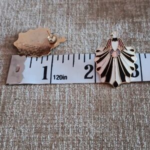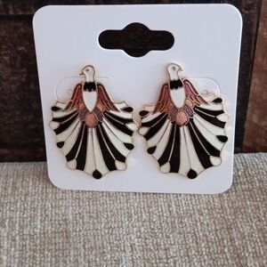 Gold Tone Black White with Pink Accent Bird Earrings