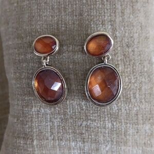 Gold Tone Faux Bezel Set Amber Tear Drop Earrings