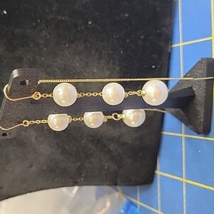 Gold Tone Faux Pearl Drop Thread Thru 4" Earrings