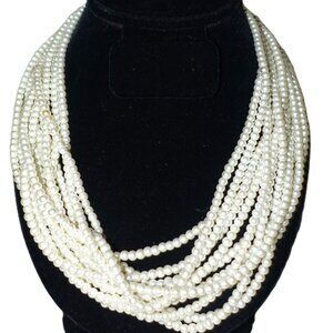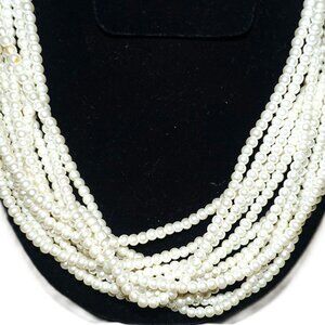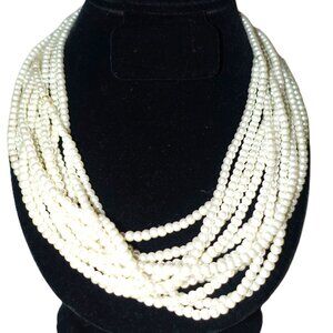 Gold Tone Faux Pearl Multi Strand Choker Necklace