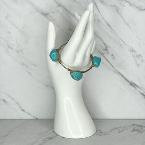 Gold Tone Faux Turquoise Beaded Small Wire Bangle Bracelet
