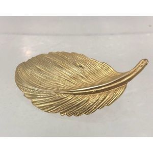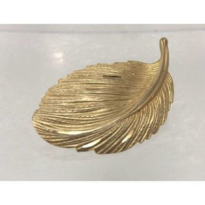 Gold Tone Feather Brooch Leaf Pin Jewelry.